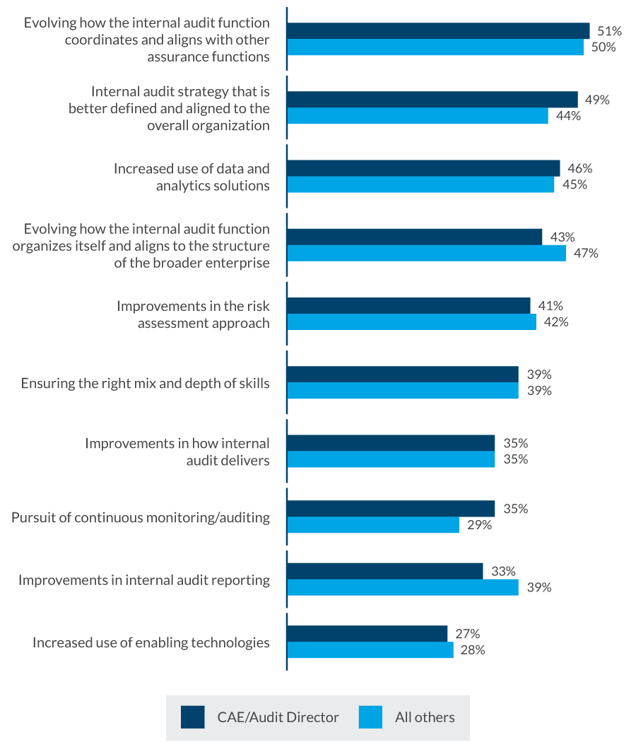 CAEs and Audit Directors who believe evolving how the internal audit function coordinates and aligns with other assurance functions is a top transformation priority.