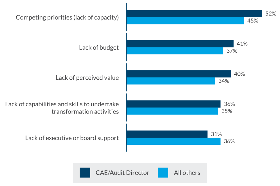 CAEs and Audit Directors who view competing priorities as a barrier to innovation and transformation.