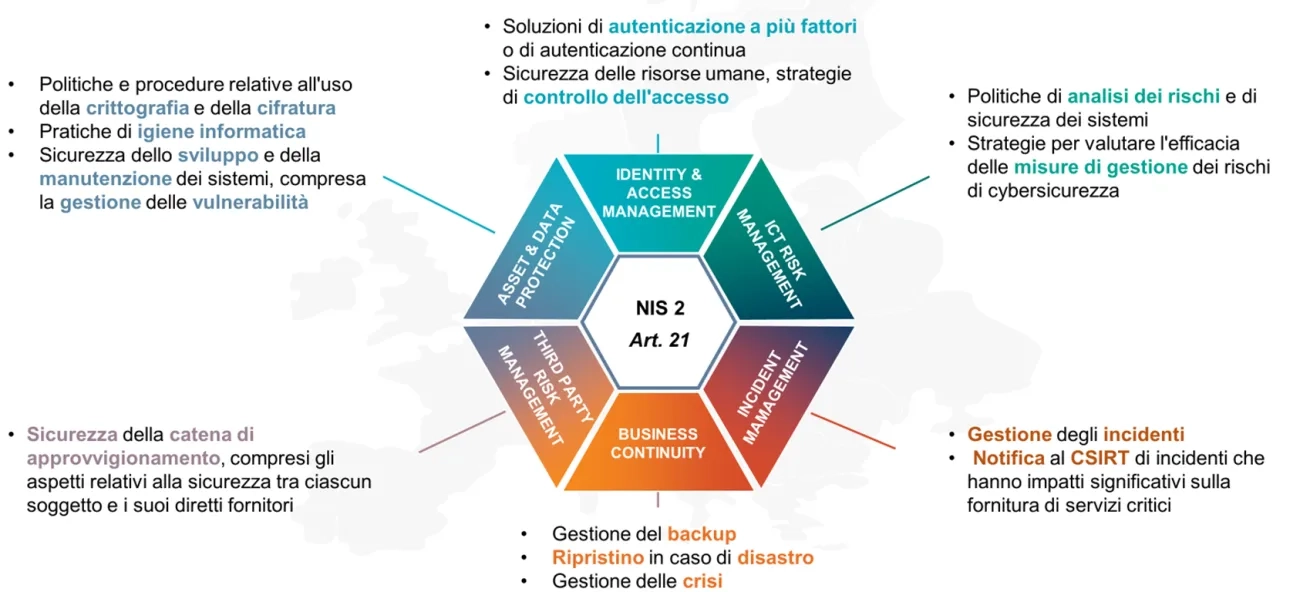 Direttiva NIS 2 (Network and Information Security): i punti chiave per l’applicazione 7 min read Scarica La Direttiva (UE) 2022/2555 (NIS 2), recepita in Italia tramite Decreto Legislativo approvato da parte del Consiglio dei Ministri lo scorso 10 Giugno 2024, rappresenta un’evoluzione significativa nell'ambito della cybersecurity a livello europeo, sottolineando il ruolo cruciale degli Stati membri nella creazione e nel mantenimento di un ecosistema digitale sicuro e resiliente, in un contesto geopolitico caratterizzato da numerosi conflitti che non si limitano all’ambito fisico, ma coinvolgono in maniera sempre più rilevante il cyber spazio.Tra gli obiettivi principali della NIS 2 rientrano il potenziamento della resilienza delle infrastrutture critiche e la promozione della cooperazione tra gli Stati membri. La direttiva mira altresì a garantire una risposta transfrontaliera coordinata alle minacce informatiche e ad aumentare la trasparenza e la responsabilità nelle organizzazioni considerate critiche. Il recepimento della Direttiva NIS 2 da parte degli Stati membri è previsto entro il 17 ottobre 2024, definendo e pubblicando le misure necessarie, informando le organizzazioni interessate e monitorando l’effettiva implementazione delle misure volte alla gestione dei rischi e delle minacce di cyber security. Scarica Topics Cybersecurity and Privacy Industries Technology, Media and Telecommunications Contesto NormativoLa Direttiva NIS 2, recepita in Italia tramite Decreto Legislativo approvato da parte del Consiglio dei Ministri lo scorso 10 Giugno 2024, si inserisce in un quadro più ampio di adattamento e risposta alle sfide determinate dalla digitalizzazione, confermando l’impegno transfrontaliero dell’Unione Europea nel promuovere una cyber-resilienza efficace e coordinata a livello continentale. La NIS 2 sostituisce la precedente Direttiva NIS del 2016, recepita in Italia nel 2018 e rafforzata, attraverso l’istituzione del Perimetro di Sicurezza Nazionale Cibernetica (PSNC), arricchendo in maniera sinergica il fitto quadro normativo europeo in materia di Cyber Security e Resilience delle Infrastrutture Critiche che comprende, tra gli altri, il Digital Operational Resilience Act (DORA), il Cybersecurity Act, il General Data Protection Regulation (GDPR) e la recente Direttiva sulla Resilienza delle infrastrutture critiche (CER, Critical Entities Resilience).Punti chiave per l’applicazioneRispetto alla NIS, la nuova Direttiva supera la distinzione tra Operatori di Servizi Essenziali (OSE) e Fornitori di Servizi Digitali (FSD), introducendo le categorie di Soggetti Essenziali e Soggetti Importanti ed ampliando così la lista dei settori di servizi essenziali coinvolti. Mentre la NIS lasciava agli Stati membri una certa discrezionalità nella specifica identificazione degli operatori, la NIS 2 stabilisce criteri più chiari per l’individuazione dei soggetti rientranti nell’ambito di applicazione1. In particolare, sono inclusi soggetti pubblici o privati dei settori definiti ad "Alta criticità" (Allegato I) e “Altri settori critici” (Allegato II), che rientrano almeno nella categoria delle medie imprese2.Allegato I – Settori ad Alta Criticità Allegato II – Altri Settori CriticiEnergia (energia elettrica, teleriscaldamento e tele raffrescamento, petrolio, gas, idrogeno)Servizi postali e di corriereTrasporti (aereo, ferroviario, per via d’acqua, su strada)Gestione dei rifiutiSettore bancarioFabbricazione produzione e distribuzione di sostanze chimicheInfrastrutture dei mercati finanziariProduzione, trasformazione e distribuzione di alimentiSettore sanitarioFabbricazioni di dispositivi medici e medico diagnostici in vitro, di computer e prodotti di elettronica e ottica, di apparecchiature elettriche, di macchinari e apparecchiature, di autoveicoli, rimorchi e semirimorchi, di altri mezzi di trasportoAcqua potabileFornitori di servizi digitaliAcque reflueRicercaInfrastrutture digitaliSettore dei servizi postali e di corriereGestione dei servizi TICFornitori di servizi digitaliPubblica AmministrazioneRicercaSpazio Si riporta di seguito una sintesi dei criteri per identificare i Soggetti Essenziali e i Soggetti Importanti secondo la Direttiva NIS 2: Image Entro il 17 aprile 2025 gli Stati membri sono tenuti a definire un elenco dei Soggetti Essenziali e Importanti. Tale elenco dovrà essere riesaminato periodicamente, almeno ogni due anni, e aggiornato quando necessario. La Direttiva NIS 2 stabilisce che gli Stati membri debbano garantire che i soggetti inclusi nel campo di applicazione implementino una serie di misure organizzative e tecniche. Al riguardo, è necessario assicurare:la partecipazione attiva della governance dei Soggetti Essenziali e Importanti nella gestione dei rischi legati alla sicurezza informatica (Art. 20);l’adozione di misure per la gestione dei rischi di sicurezza informatica da parte dei Soggetti Essenziali e Importanti, utilizzando un approccio che integri aspetti tecnici, operativi e organizzativi (Art 21);la segnalazione tempestiva da parte dei Soggetti Essenziali e Importanti di qualsiasi incidente significativo (Art 23).Per conseguire il rispetto delle misure di gestione dei rischi legati alla sicurezza informatica, la Direttiva NIS 2 permette a ogni Stato membro di decidere se imporre ai Soggetti Essenziali e Importanti l'uso di specifici prodotti, servizi e processi ICT, sviluppati internamente o acquisiti da terzi, che siano certificati secondo i sistemi europei di certificazione della sicurezza informatica (Art 24).Le misure dovranno includere, tra l’altro, l’implementazione di protocolli di comunicazione sicura, la formazione continua del personale in materia di cybersecurity, l’adozione di tecnologie di rilevamento e risposta agli incidenti, lo sviluppo di piani di continuità operativa e di ripristino, e la collaborazione con le autorità nazionali per garantire una risposta tempestiva e coordinata agli incidenti.D